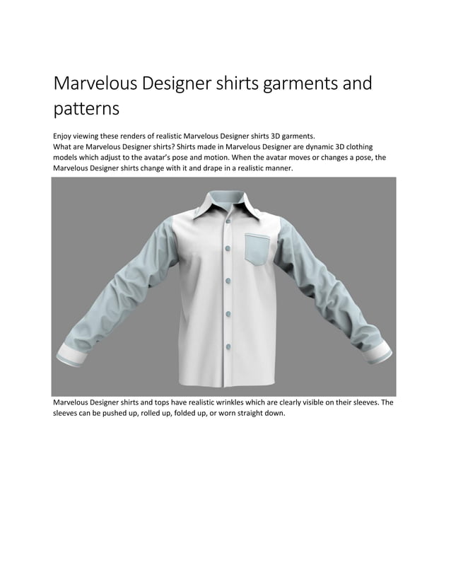 Marvelous Designer Shirts Garment Sample Renders 3d Clothes By Cami